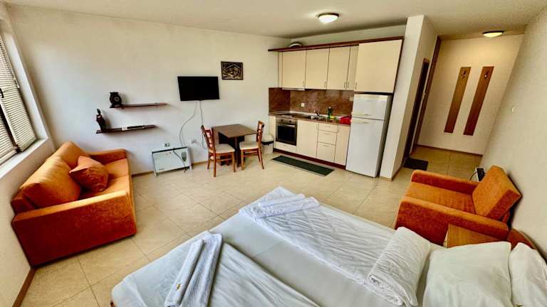 Die Todorini Kuli Apartments befinden sich in unmittelbarer Nähe zur Gondelbahn, was sie zu einem idealen Ausgangspunkt für Skifahrer macht. Das Zentrum von Bansko ist etwa 1 km entfernt und bietet eine Vielzahl von Restaurants, Bars und Geschäften. Der Busbahnhof von Bansko ist nur 2 km entfernt, so dass Sie bequem die umliegenden Gebiete erkunden können.
