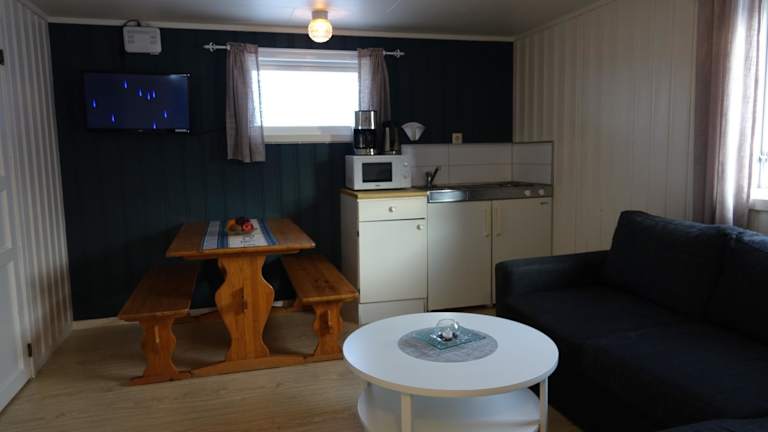 Die Unterkünfte im Toftenes Sjøhuscamping sind komfortabel und gut ausgestattet. Jede Unterkunft verfügt über eine Terrasse mit Blick auf die Berge oder den Garten. Eine voll ausgestattete Küche mit Kühlschrank, Mikrowelle, Kochfeld und Wasserkocher ist ebenfalls vorhanden.