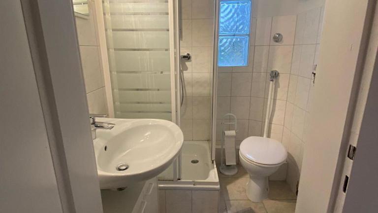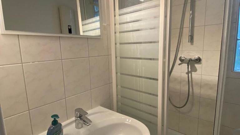 Die Ferienwohnung umfasst ein Schlafzimmer, eine voll ausgestattete Küche mit Kühlschrank und Geschirrspüler sowie ein Badezimmer mit Dusche und Haartrockner. Handtücher und Bettwäsche werden bereitgestellt.