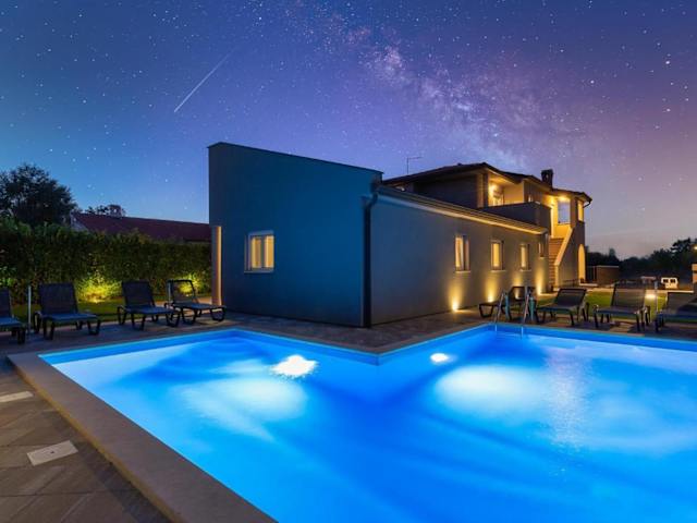 Toni & Julija ist eine Unterkunft, die ihren Gästen Annehmlichkeiten wie kostenloses WLAN, Klimaanlage und einen saisonalen Außenpool bietet. Die Unterkunft verfügt über einen Garten und eine Terrasse mit Blick auf den Pool. Es sind keine Feiern wie Junggesellenabschiede erlaubt, und die Unterkunft ist eine Nichtraucherzone. Check-in ist von 15:00 bis 20:00 Uhr, und Check-out erfolgt zwischen 07:00 und 10:00 Uhr.