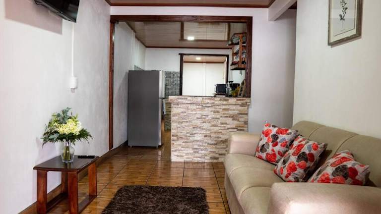 Willkommen im Tony's House in Fortuna! Dieses klimatisierte Ferienhaus ist eine perfekte Unterkunft für Ihren Aufenthalt in der Region. Profitieren Sie von kostenlosem WLAN und Privatparkplätzen an der Unterkunft und genießen Sie den Komfort von 3 Schlafzimmern, einer voll ausgestatteten Küche und einem gemütlichen Sitzbereich. Die Lage des Hauses ist ideal für Ausflüge in die Umgebung, darunter die Kalambu Hot Springs, der Mistico Arenal Hanging Bridges Park und der Sky Adventures Arenal. Auch der Wasserfall La Fortuna ist nur einen Katzensprung entfernt.