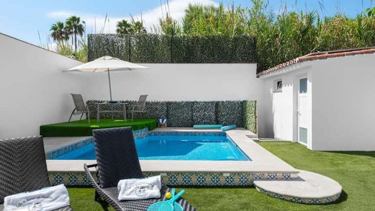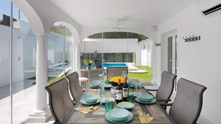 Die Unterkunft bietet eine moderne Ferienhaus-Atmosphäre mit kostenlosem WLAN, Klimaanlage und einem Außenpool. Das Ferienhaus hat einen eigenen Pool, einen Garten und privaten Parkplatz. Es ist ein Nichtraucherhaus und wird von einem privaten Gastgeber geführt.