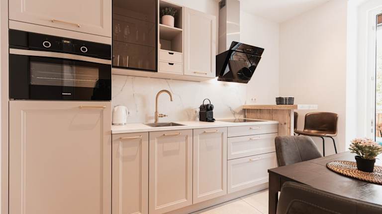 Die Ferienwohnung ist mit einem Satelliten Flachbild-TV, einer gut ausgestatteten Küche (inklusive Kühlschrank, Geschirrspüler und Ofen) sowie einem Badezimmer mit Dusche und kostenlosen Pflegeprodukten ausgestattet.