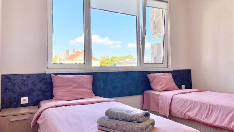 Das klimatisierte Apartment im Top Centre Zara bietet seinen Gästen ein komfortables und gemütliches Ambiente. Es besteht aus zwei Schlafzimmern, einem Wohnzimmer, einer voll ausgestatteten Küche mit Kühlschrank und Kaffeemaschine sowie einem Badezimmer mit Dusche und Haartrockner. Handtücher und Bettwäsche werden den Gästen zur Verfügung gestellt. Auf der Terrasse oder dem Balkon können die Gäste den Blick auf die Stadt genießen.