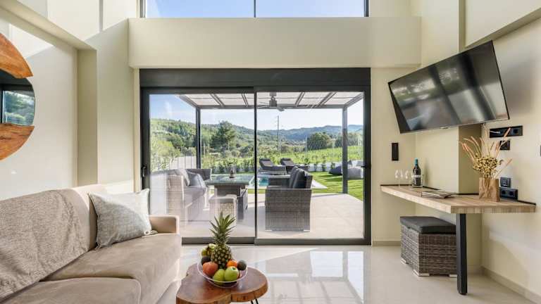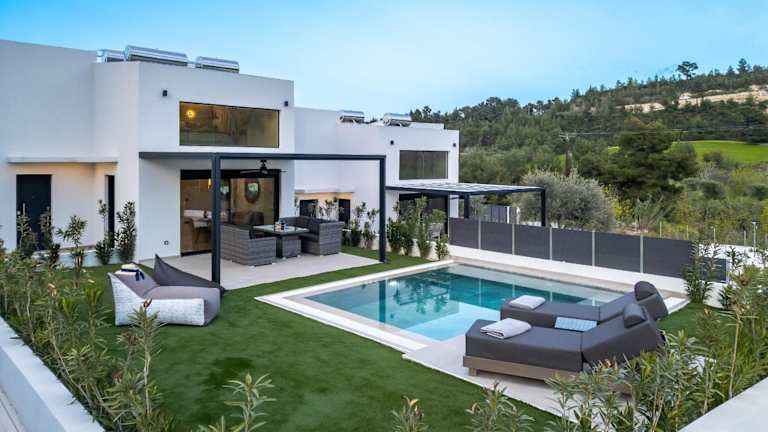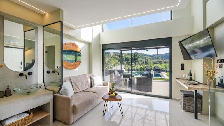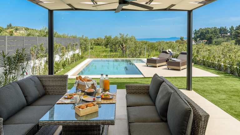 Die Unterkunft befindet sich etwa 1,4 km vom Strand Pefkohori entfernt und bietet Poolblick sowie eine ruhige Umgebung mit Garten und Terrasse.