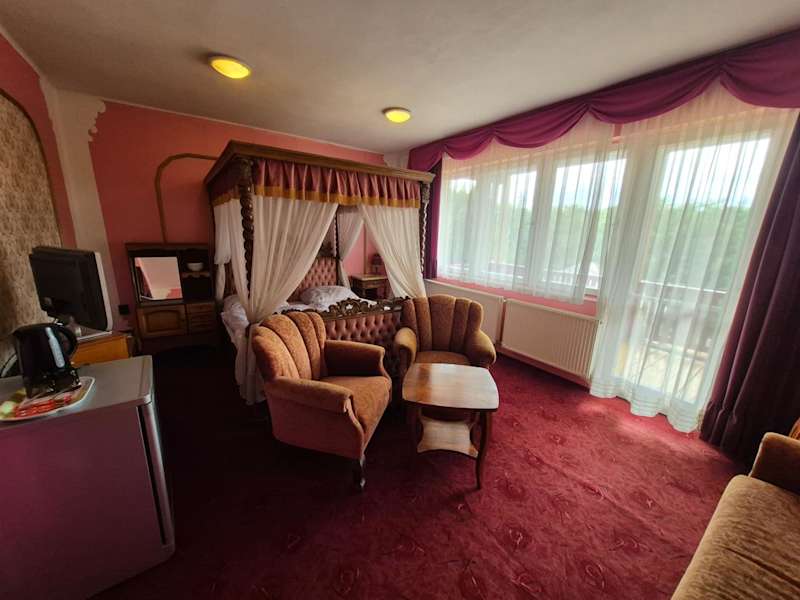Jedes Zimmer in der Unterkunft Tornácos ház ist mit einem Balkon ausgestattet. Zusätzlich verfügen die Zimmer über einen Flachbild-TV, ein eigenes Badezimmer und eine Terrasse, die einen Blick auf die umliegenden Berge bietet.