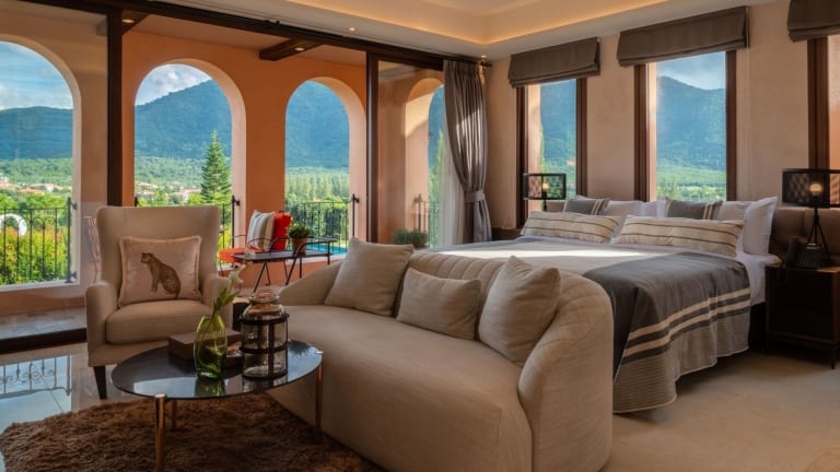 Alle Zimmer sind mit einem Sitzbereich, einem Flachbild-TV sowie einer Kaffeemaschine eingerichtet. Einige Zimmer verfügen über einen Balkon und bieten einen Blick auf die Berge. Zur Ausstattung gehören Bettwäsche und Handtücher.