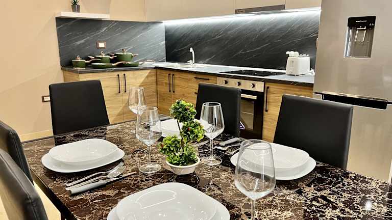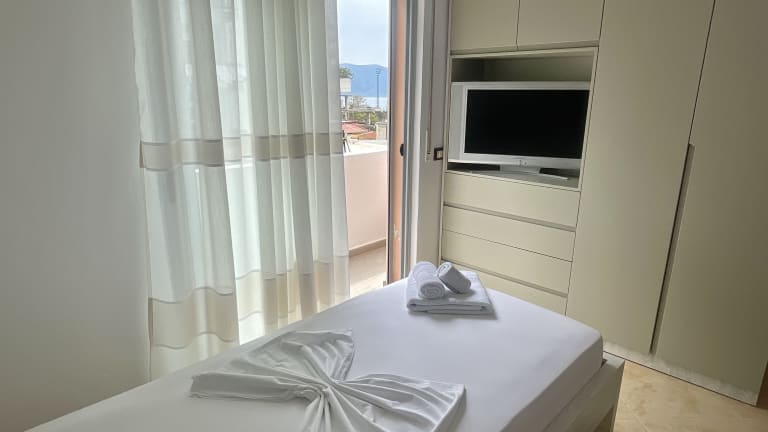 Die TOURISTS RESIDENCE befindet sich in idealer Lage, nur 200 m vom Strand Ri in Vlora entfernt. Dieser Strand ist bekannt für sein kristallklares Wasser und seinen feinen Sand. In der Nähe finden Sie auch den Strand Vlore und den Strand von Government Villas, die ebenfalls einen Besuch wert sind. Vlora ist eine charmante Küstenstadt mit vielen Restaurants, Bars und Geschäften, die alle innerhalb kurzer Entfernung von der Unterkunft erreichbar sind. Der internationale Flughafen Tirana ist etwa 154 km entfernt und kann gegen Aufpreis mit dem Flughafentransfer der Unterkunft erreicht werden.