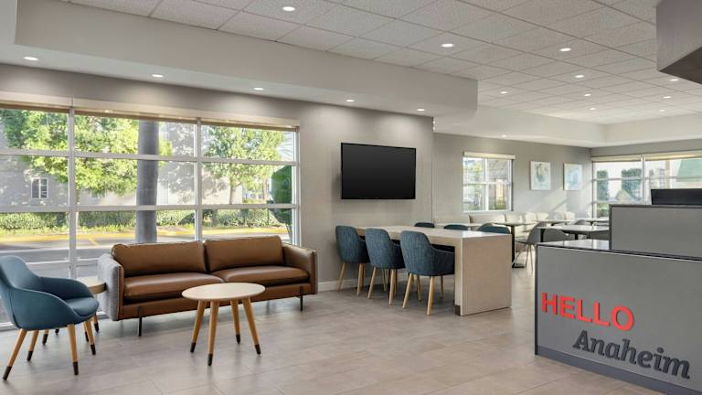 Das Hotel befindet sich in Anaheim, nur 10 Gehminuten vom Angel Stadium entfernt. In der Nähe finden Gäste zahlreiche Geschäfte, darunter einen Supermarkt sowie verschiedene Freizeitmöglichkeiten. Das Disneyland Resort ist in 10 Fahrminuten zu erreichen.