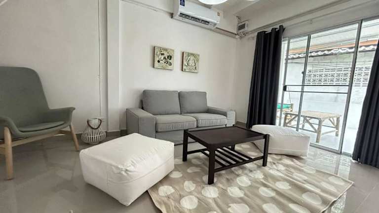 Townhouse nearby Klong Dao beach bietet Übernachtungsmöglichkeiten in einem Ferienhaus mit zwei Schlafzimmern und einer voll ausgestatteten Küche. Das Anwesen ist klimatisiert und umfasst eine Terrasse sowie einen Balkon. WLAN ist kostenlos verfügbar.