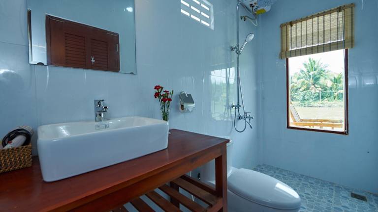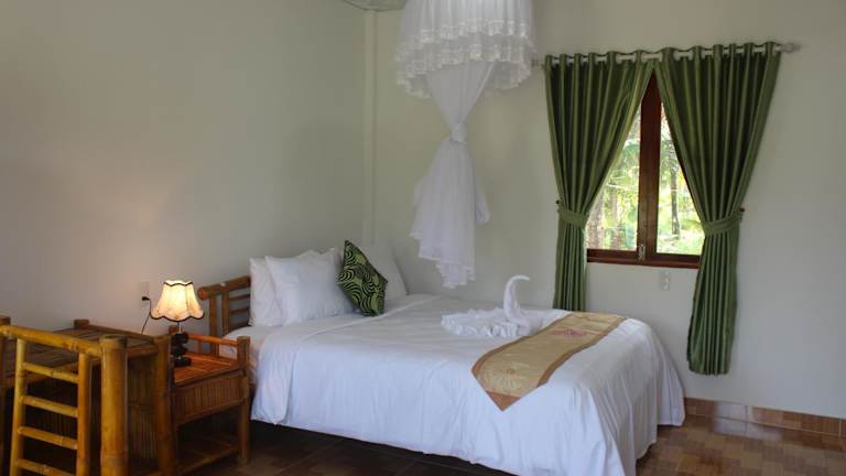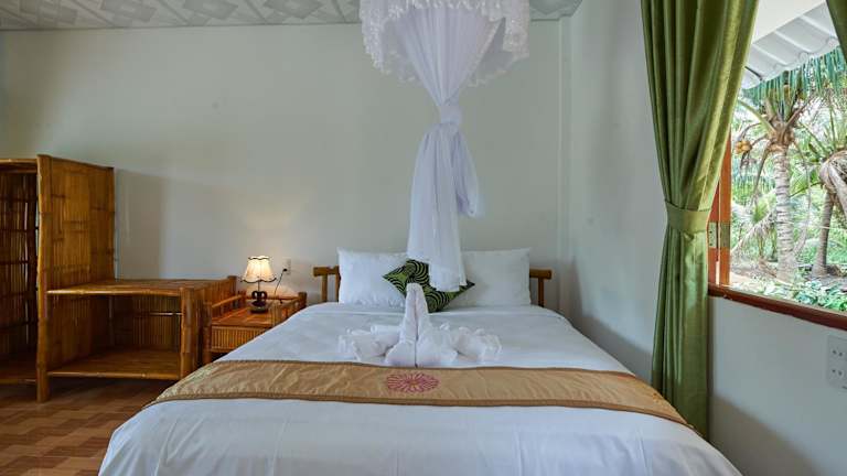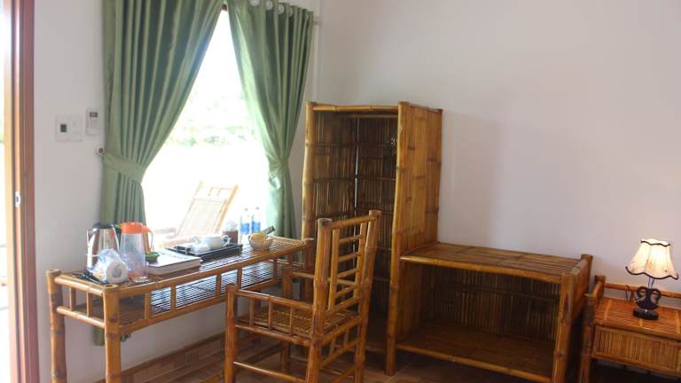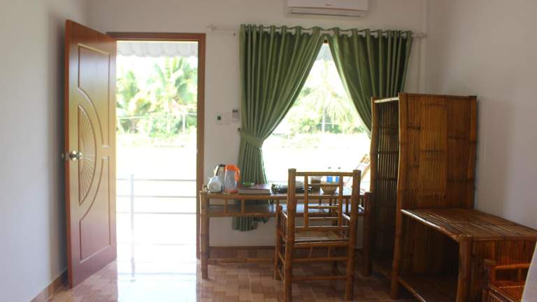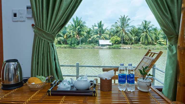 Die Zimmer in der Tra Vinh Lodge sind mit einem Schreibtisch, Bettwäsche und einem Balkon mit Blick auf den Fluss ausgestattet. Jedes Zimmer verfügt über ein eigenes Badezimmer, das mit kostenlosen Pflegeprodukten, einem Haartrockner und einem Bidet ausgestattet ist. Zur weiteren Ausstattung gehören ein Kleiderschrank und ein Wasserkocher.