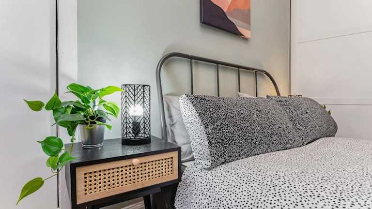 Die Ferienwohnung umfasst 1 Schlafzimmer, eine Küche ausgestattet mit Kühlschrank und Ofen, sowie ein Badezimmer mit einer Dusche. Kostenlose Pflegeprodukte und eine Waschmaschine sind vorhanden. Handtücher und Bettwäsche werden bereitgestellt.