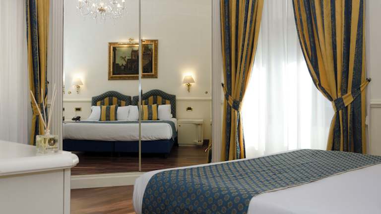 Das Hotel Traiano befindet sich in der historischen Mitte von Rom, direkt gegenüber dem Forum Romanum. Die Lage ist ideal, da die Hauptattraktionen der Stadt wie der Trevi-Brunnen, die Spanische Treppe und das Kolosseum in unmittelbarer Nähe liegen. Der Bahnhof Rom Termini und der Trevi-Brunnen sind nur 10 Gehminuten entfernt.