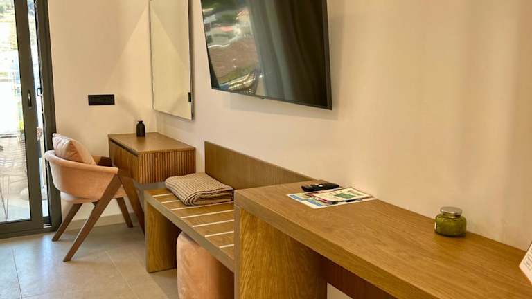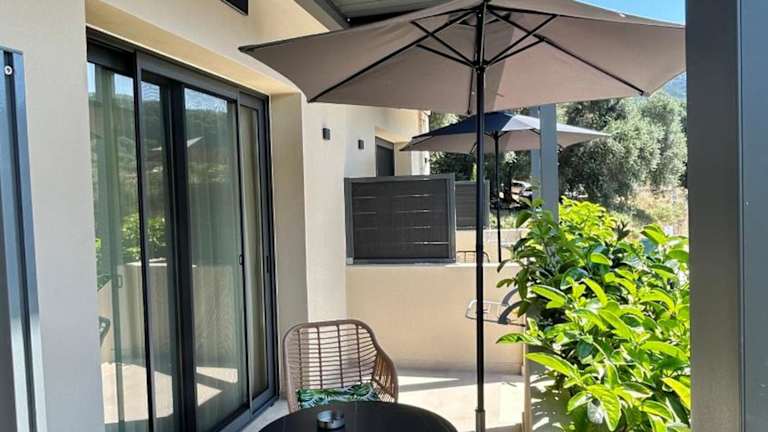 Alle Unterkünfte zur Selbstversorgung verfügen über Fliesenböden und sind mit einem Satelliten-Flachbild-TV, einem Safe und einer ausgestatteten Küche mit Kühlschrank ausgestattet. Jede Wohneinheit hat ein eigenes Badezimmer mit Dusche. Einige Unterkünfte besitzen zusätzlich einen Balkon und/oder eine Veranda oder Patio mit Meerblick.
