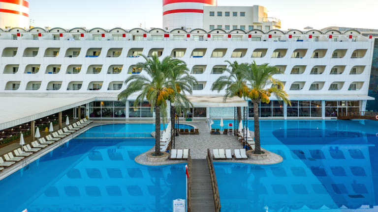 Das bietet Ihre Unterkunft: 112 Family-Suiten, 8 Deluxe-Suiten, 358 Standart Zimmer bieten die Möglichkeit, komfortabel und bequem zu wohnen. Diese verteilen sich auf ein Hauptgebäude und 2 Nebengebäude. In den 11 Villen/Häusern werden sich die Gäste wie zu Hause fühlen. In dem klimatisierten Hotel werden die Reisenden im Empfangsbereich mit 24-Stunden-Rezeption und 24-Stunden-Check-in/out-Service willkommen geheißen. Erreichbar sind die einzelnen Decks bequem mit dem Aufzug oder über die Treppe. Die Einrichtung des Hauses umfasst eine Garderobe, einen Safe. Per WiFi erhalten die Passagiere in den öffentlichen Bereichen Zugang zum Internet. Rollstuhlgerechte Einrichtungen sind vorhanden. Ein Supermarkt und ein Souvenirshop und andere Geschäfte können zum Einkaufen und Bummeln genutzt werden. Die Unterbringung bietet eine Gartenanlage und einen Spielplatz. Zu den weiteren Einrichtungen des Hotels zählen ein TV-Raum, ein Spielzimmer und eine Bibliothek. Für Gäste, die auf den eigenen Pkw nicht verzichten möchten, steht an Bord ein Parkdeck zur Verfügung. Zu den weiteren Angeboten gehören ein Babysitterservice auf Anfrage, medizinische Betreuung, ein Kabinenservice, ein Wäscheservice, ein Friseur und ein Schiffsarzt. Folgende Kreditkarten werden in der Unterbringung akzeptiert: Visa, Eurocard und MasterCard.