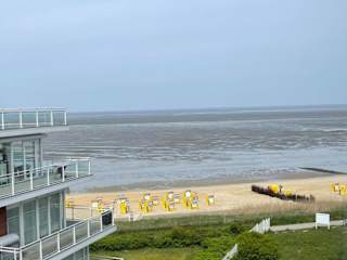 Die Ferienwohnung befindet sich in Cuxhaven Duhnen, in der ersten Reihe mit direktem Blick auf das Meer. Der Strand ist nur etwa 50 Meter entfernt, was eine unkomplizierte Erreichbarkeit ermöglicht. Die Region bietet weitere Attraktionen, wie die Alte Liebe in 7,5 km Entfernung und die Stadthalle Bremerhaven in 46 km Entfernung. Der nächste Flughafen ist der Flughafen Bremen, der sich 107 km von der Unterkunft befindet.