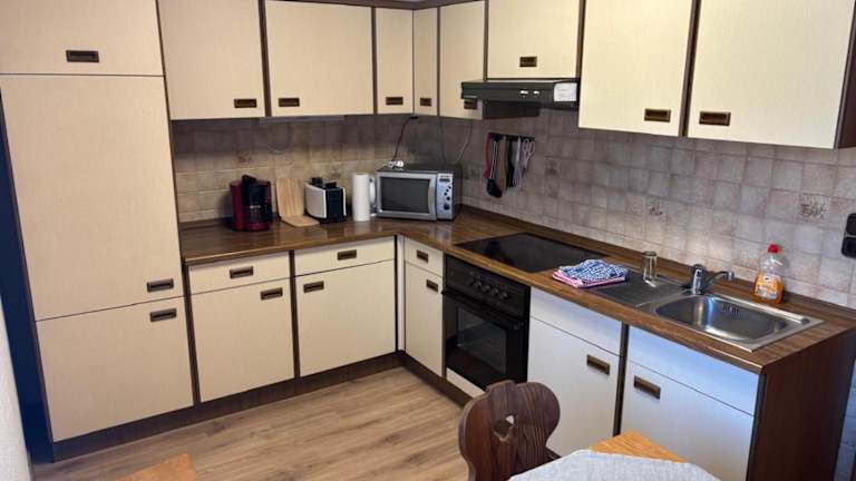 Die Wohnung verfügt über zwei Schlafzimmer und ist mit einem Badezimmer sowie einer voll ausgestatteten Küche eingerichtet. Der Balkon bietet einen Blick auf den Garten, was zusätzlichen Komfort und Entspannung ermöglicht.
