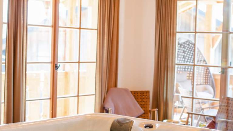 In der Umgebung des Chalets können Gäste Aktivitäten wie Skifahren, Wandern und Radfahren genießen. Der Wellnessbereich bietet zudem eine Sauna und einen Whirlpool zur Entspannung.