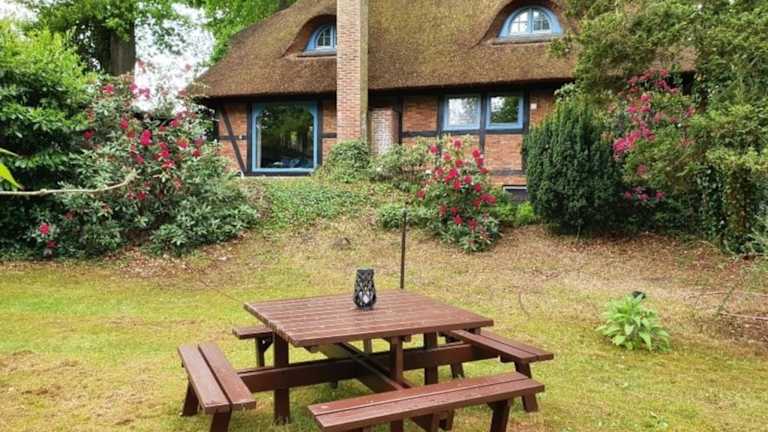 Das traumhafte Reetdachhaus 'Grote Eken' in der Lüneburger Heide bietet eine komfortable Übernachtungsmöglichkeit in einem charmanten Ferienhaus. Die Unterkunft verfügt über einen Garten und eine Terrasse, die zum Entspannen einlädt. Ein kostenloser Privatparkplatz ist ebenfalls vorhanden.