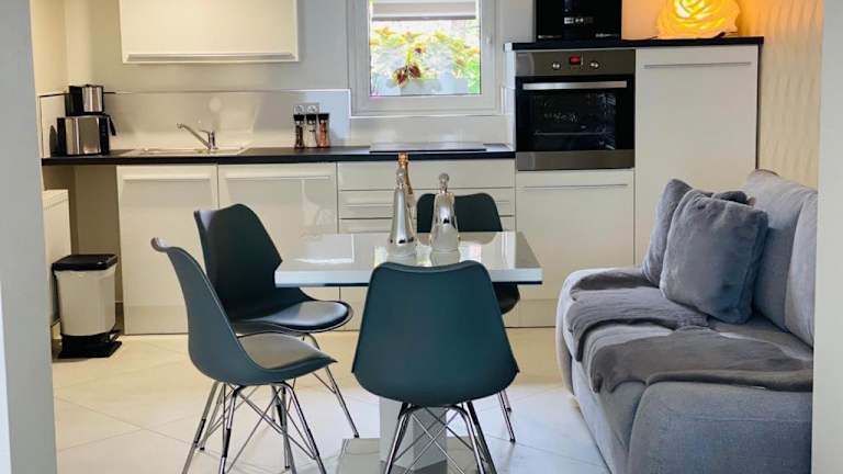 Die Ferienwohnung verfügt über 1 Schlafzimmer, ein Wohnzimmer mit Flachbild-TV, eine voll ausgestattete Küche mit Kühlschrank und Geschirrspüler sowie ein Badezimmer mit Dusche. Handtücher und Bettwäsche werden bereitgestellt.
