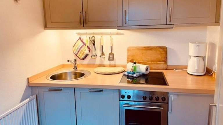 Die Ferienwohnung umfasst ein Schlafzimmer und eine Küchenzeile, die mit einem Kühlschrank, einem Geschirrspüler und einer Kaffeemaschine ausgestattet ist. Zur Ausstattung gehört auch ein Fernseher. Die Unterkunft bietet eine Nichtraucherumgebung, sowohl in öffentlichen als auch in privaten Bereichen.