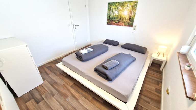 Die Ferienwohnung umfasst drei Schlafzimmer, ein Wohnzimmer mit Flachbild-TV sowie eine gut ausgestattete Küche. Ein Badezimmer mit Dusche ist ebenfalls vorhanden. Die Unterkunft stellt Bettwäsche, Handtücher und Wäsche zur Verfügung, die nach den Richtlinien der örtlichen Behörden gewaschen werden.