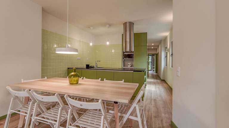 Einige Wohneinheiten sind mit einer Küchenzeile ausgestattet, die über einen Kühlschrank, einen Ofen und eine Mikrowelle verfügt.