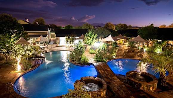 Die Arebbusch Travel Lodge befindet sich am trockenen Fluss Arebbusch, nur 5 km vom Zentrum von Windhoek entfernt. Die Lage bietet eine ruhige Umgebung und gleichzeitig eine gute Anbindung an die Stadt. In der Nähe des Hotels finden Sie das nationale Rugbystadion sowie Möglichkeiten zum Bowlen, Golfspielen und den Besuch eines Sportzentrums. Der internationale Flughafen Windhoek ist 50 km entfernt.