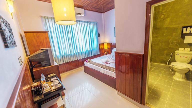Die Zimmer im Hotel Traveller Home Angkor sind komfortabel und gemütlich eingerichtet. Jedes Zimmer verfügt über eine Klimaanlage, WLAN und einen Balkon, auf dem Sie entspannen können. Für Familien stehen auch Familienzimmer zur Verfügung. Die Badezimmer sind mit einer Dusche und einem Haartrockner ausgestattet.