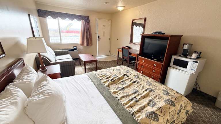 Die 49 Zimmer des Drumheller Hotels bieten einen entspannten und komfortablen Aufenthalt. Jedes Zimmer verfügt über eine gut ausgestattete Küche und ein eigenes Badezimmer. Zur Standardausstattung gehören auch eine Klimaanlage, ein Schreibtisch, ein Flachbildfernseher mit Kabelempfang und kostenloses WLAN. Für zusätzlichen Komfort stehen ein Kühlschrank, eine Mikrowelle, eine Tee-/Kaffeemaschine und ein Haartrockner zur Verfügung.