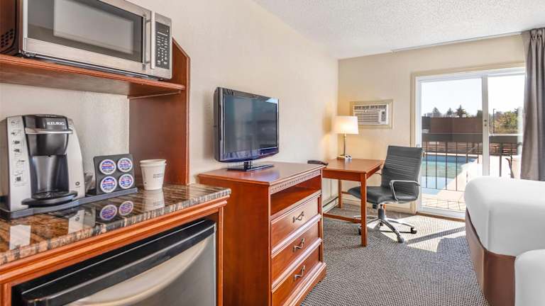 Das Hotel Travelodge Gananoque in Gananoque bietet seinen Gästen eine angenehme Unterkunft in einer malerischen Umgebung. Mit freundlichem Service und komfortablen Zimmern ist das Hotel ideal für einen erholsamen Aufenthalt. Die Lage des Hotels ermöglicht es den Gästen, die umliegende Natur zu erkunden und verschiedene Freizeitaktivitäten wie Golf und Minigolf zu genießen. Das Hotel verfügt über einen Innen- und Außenpool, in dem sich die Gäste entspannen können. Das Frühstück ist im Preis inbegriffen und das Hotel bietet auch einen Zimmerservice für zusätzlichen Komfort an.