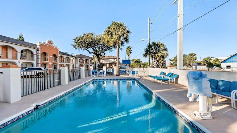 Das Travelodge by Wyndham Suites St Augustine ist ein komfortables Hotel in günstiger Lage, nur wenige Fahrminuten vom historischen Zentrum von St. Augustine entfernt. Die geräumigen Zimmer bieten kostenfreies WLAN und sind mit allen notwendigen Annehmlichkeiten ausgestattet. Gäste können den Außenpool nutzen und profitieren von kostenfreien Parkplätzen. Das Hotel ist ideal für Reisende, die die Sehenswürdigkeiten der Stadt erkunden möchten.
