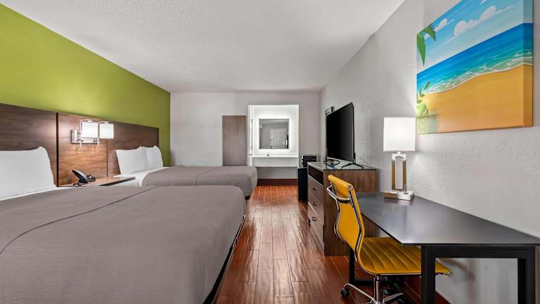 Die Zimmer im Travelodge by Wyndham Suites St Augustine sind geräumig und komfortabel eingerichtet. Jedes Zimmer verfügt über einen Flachbild-TV, eine Mikrowelle, einen Kühlschrank und kostenfreies WLAN. Die Zimmer sind in warmen Farben gehalten und haben Fliesenböden. Einige Zimmer sind rollstuhlgerecht.