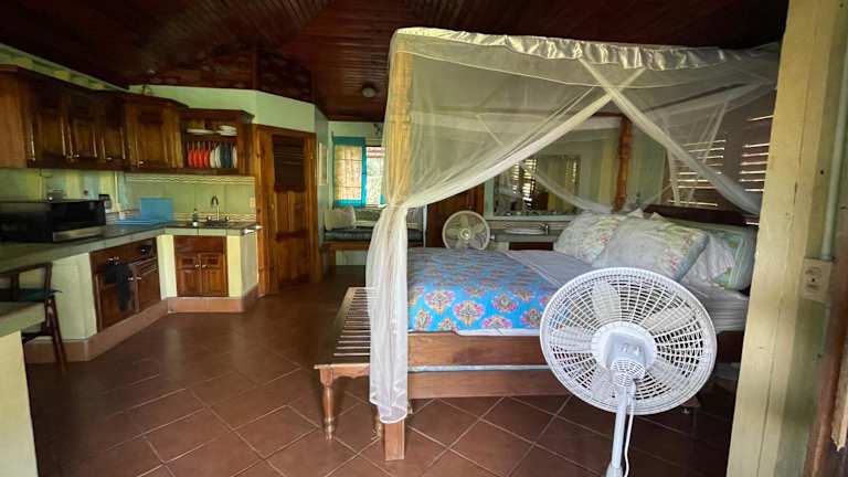 Das Treehouse Apartment at La Lodge at Long Bay auf Corn Island ist die perfekte Unterkunft für einen entspannten Urlaub am Meer. Mit einem wunderschönen Garten, einer Terrasse und Wassersportmöglichkeiten bietet diese Privatunterkunft alles, was Sie für einen unvergesslichen Aufenthalt benötigen. Genießen Sie den Meerblick und erkunden Sie die Umgebung beim Wandern, Windsurfen und Radfahren. Die gut ausgestattete Küchenzeile ermöglicht es Ihnen, Ihre eigenen Mahlzeiten zuzubereiten, und die Dusche mit kostenlosen Pflegeprodukten sorgt für zusätzlichen Komfort. Entspannen Sie sich beim Grillen und nutzen Sie den eigenen Strandbereich. Erleben Sie die Schönheit des Long Bay Beach, der nur wenige Schritte von der Unterkunft entfernt liegt, und besuchen Sie den South West Bay Beach, der nur 2,8 km entfernt ist.