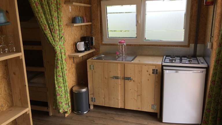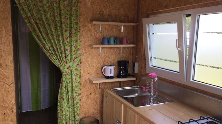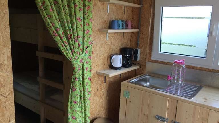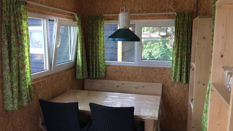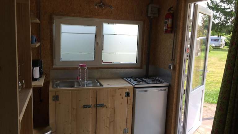 Die Unterkünfte in der Trekkershut sind alle sehr gepflegt und sauber. Sie verfügen über eine Terrasse mit Gartenblick, eine Küche mit einem Kühlschrank und einem Kochfeld sowie ein Gemeinschaftsbad. Handtücher und Bettwäsche können gegen Aufpreis zur Verfügung gestellt werden.