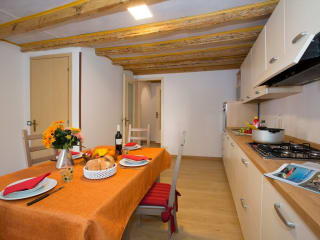 Urlaub am zentralen See in diesem trendigen Duplexapartment mit 2 Schlafzimmern! Dieses geräumige, familienfreundliche Domizil mit Platz für 4 Personen befindet sich in einer neuen Residenz in der authentischen Umgebung der tollen Urlaubsstadt Tremezzo. Lassen Sie sich von wunderschönen Balkendecken, Steinstufen und der zeitlosen Romantik dieses Domizils begeistern, die sich wunderbar mit dem zeitgenössischen Ambiente vereint. Entspannen Sie sich im einladenden, komfortablen Wohnbereich und lassen Sie so richtig die Seele baumeln. Kuscheln Sie sich auf der gemütlichen Sofagarnitur ein und erleben Sie kostbare Momente mit Ihren Lieben im offenen Wohnbereich, der mit Flachbild-Fernseher ausgestattet ist. Die modern ausgestattete, separate Küche hat einen Essbereich und bietet das ganze Jahr hindurch ein einladendes Ambiente. Die charmanten Balkendecken und der hübsche Julia-Balkon verleihen diesem Raum etwas ganz Besonderes. Die Küche ist vollständig mit allen Geräten und Utensilien ausgestattet, wie Herdplatten, Range-Ofen, Mikrowelle, Toaster und Kaffeemaschine. Genießen Sie die Freiheit eines Selbstversorgerurlaubs. Kochen Sie selbst etwas Leckeres in der hübschen Küche oder nutzen Sie die Cafés, Bars und Restaurants in Tremezzo, die direkt vor Ihrer Haustür liegen. Dieses helle und trendige Duplexapartment wartet mit vielseitigen Schlafmöglichkeiten auf. Ein Schlafzimmer hat eine romantische Balkendecke, einen Julia-Balkon und ein bequemes Doppelbett. Ein zweites Schlafzimmer, das sich in der Loft-Etage befindet (zugänglich über 12 Stufen), beinhaltet zwei Einzelbetten. Die beiden Betten im zweiten Schlafzimmer lassen sich auf Wunsch auch als Doppelbett zusammenschieben. So können Sie flexibel Ihre Schlafgelegenheiten gestalten. Darüber hinaus befinden sich zwei geräumige Badezimmer mit Duschkabinen in diesem einladenden, modernen Feriendomizil. Natürlich steht Ihnen während Ihres Aufenthaltes auch eine Waschmaschine zur Verfügung. 32 Außentreppen führen zur unteren Etage am Straßenlevel der modernen Residenz. Hier finden Sie auch die öffentlichen Parkplätze. Die Ferienstadt Tremezzo am Comer See bietet eine praktische und pittoreske Ausgangsbasis, um das Beste zu erleben, was der Comer See zu bieten hat. Der historische Bogengang führt an charmanten Cafés, Restaurants mit Seeblick, regen Bars und Geschäften vorbei. Hier kommen echte Urlaubsgefühle auf. Erkunden Sie die historischen Hintergassen von Tremezzo, die wirklich interessant sind. Hier finden Sie alte Häuser und auch die empfehlenswerte ‘La Cantina Follie’ Weinbar. Eine weitere beliebte Bar ist ‘La Aqua Cheta’, die Sie in dem wunderschönen öffentlichen Park in Tremezzo in einem umgebauten Bootshaus finden. Hier gibt es auch idyllische Plätze für ein romantisches Picknick und die Möglichkeit, im See zu schwimmen. Gestalten Sie sich Ihren Urlaub ganz nach Ihrem Geschmack und spannen Sie mal richtig aus. Der Wanderweg ‘Greenway del Lago’ führt von Colonno nach Griante und lässt Sie die wunderschöne Gegend und die atemberaubende Natur hautnah erleben. Von Tremezzo aus erreichen Sie schnell die Villa Balbianello (5 Minuten mit Auto oder Bus) und bis zur berühmten Villa Carlotta in Griante sind es zu Fuß nur 10 Minuten. Im naheliegenden Cadenabbia gibt es einen Hafen für Auto- und Fußgängerfähren. Mit den Fähren erreichen Sie ganz praktisch die berühmten Städte des Goldenen Dreiecks sowie die kosmopolitische Stadt Como mit ihren Transportanbindungen nach Mailand. Die Hauptstadt des Sees erreichen Sie alternativ auch mit dem Auto oder dem Bus von Tremezzo aus in 47 Minuten. Der zentrale See bietet ein Riesenangebot an Freizeitaktivitäten, wie Tage im Lido, Segeln, Wassersportarten, das Mieten von Booten und Kajaks, Tennis, Golf, Wandern, Radfahren und Gleitschirmfliegen. In den Wintermonaten laden die Skiorte Piani di Bobbio und Madesimo in den italienischen Alpen zu einem Besuch ein. Sie schlemmen gerne? Dann sind Sie hier richtig - entdecken Sie die feine italienische Küche, besuchen Sie einen Kochkurs oder nehmen Sie an einer Weinprobe teil. Für Ihre Geschmacksknospen wird in dieser Gegend allerhand geboten. Die naheliegenden Städte Como (47 Autominuten), Lugano (44 Autominuten) und Mailand (80 Autominuten) bieten tagsüber und auch nachts Kultur, Shopping und Unterhaltung.