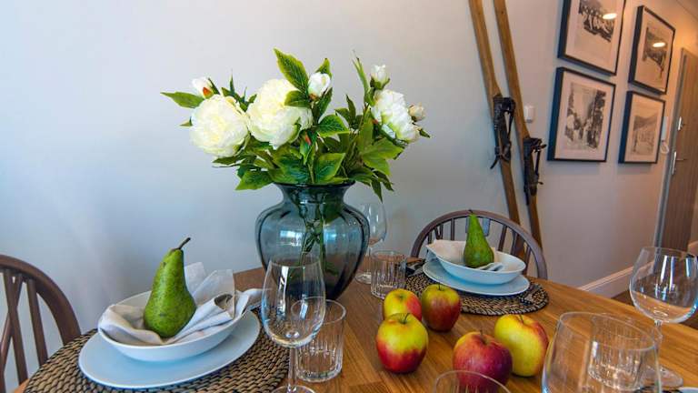 Die Ferienwohnung verfügt über ein Schlafzimmer, ein Wohnzimmer sowie einen Flachbild-TV. Für die Selbstversorgung steht eine gut ausgestattete Küchenzeile mit Kühlschrank und Geschirrspüler zur Verfügung. Das Badezimmer ist mit einer Dusche ausgestattet. Handtücher und Bettwäsche werden bereitgestellt.