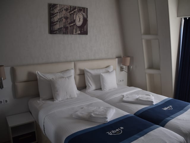 Das Tribeca Hotel verfügt über moderne Zimmer mit individuell regulierbarer Klimaanlage. Zur Ausstattung gehören ein Flachbild-Sat-TV, ein Safe, eine Minibar, eine Tee-/Kaffeemaschine und kostenfreies WLAN. Die Badezimmer sind mit Hausschuhen, kostenfreien Pflegeprodukten, einem Haartrockner und Bademänteln ausgestattet.