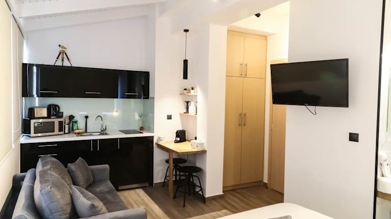 Die Wohneinheiten sind mit einer Küche ausgestattet, die über Kühlschrank und Mikrowelle verfügt. Weitere Annehmlichkeiten umfassen einen Safe, einen kabelgebundenen Flachbild-TV, Bügelmöglichkeiten, einen Schreibtisch, einen Sitzbereich mit Schlafsofa sowie ein eigenes Badezimmer mit Dusche, kostenlosen Pflegeprodukten und einem Haartrockner. Die Zimmer sind schallisoliert und bieten allergikerfreundliche Optionen.