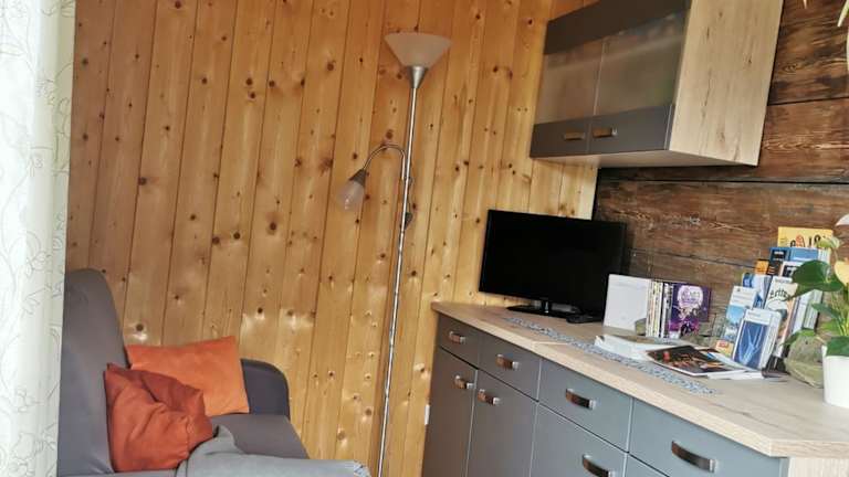 Für die Selbstverpflegung ist die Ferienwohnung mit einer Küchenzeile ausgestattet, die über einen Kühlschrank und eine Mikrowelle verfügt. Grillmöglichkeiten sind ebenfalls vorhanden.