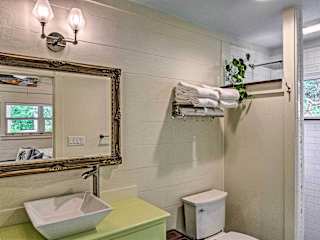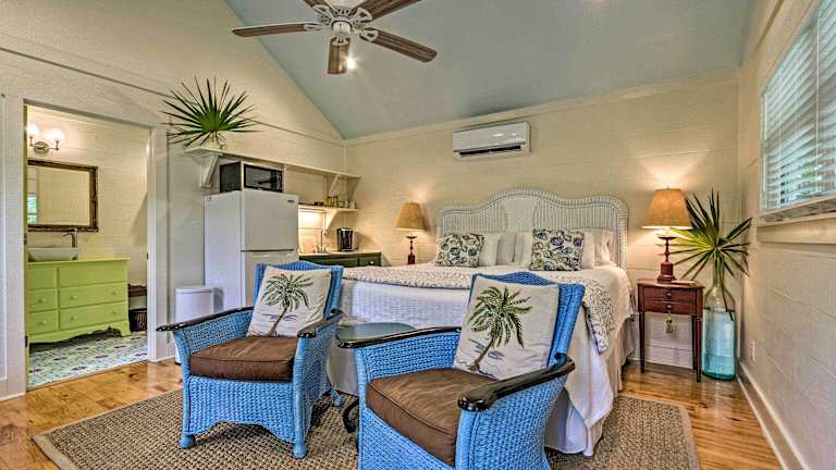 Das Tropical Seaside Studio Quarter Mile to Seaside! bietet komfortable Unterkünfte mit Annehmlichkeiten wie kostenfreiem WLAN und einem Flachbild-TV. Das Apartment verfügt über eine gut ausgestattete Küche mit einem Kühlschrank, einer Mikrowelle und einem Toaster. Ein Badezimmer mit Dusche, kostenfreien Pflegeprodukten und einem Haartrockner ist ebenfalls vorhanden. Die Einrichtung ist gemütlich und lädt zum Entspannen ein.