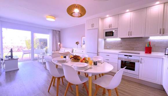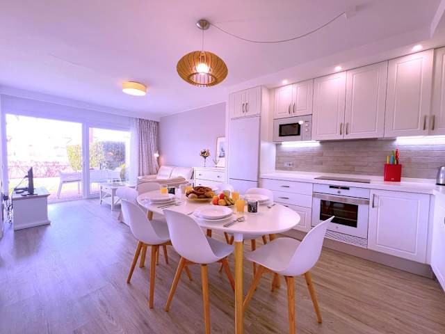 Die Unterkunft umfasst zwei Schlafzimmer und ein Badezimmer. Zur Ausstattung gehören Bettwäsche, Handtücher sowie ein Flachbild-TV. Die voll ausgestattete Küche und der Essbereich bieten angemessene Möglichkeiten zur Selbstverpflegung. Eine Terrasse mit Poolblick ist ebenfalls vorhanden.