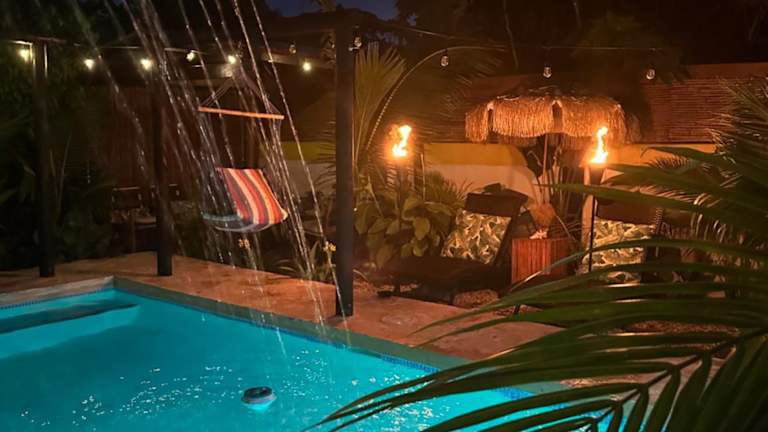 Tropicoco Pool House Steps From The Beach ist direkt am Strand gelegen und bietet Übernachtungsmöglichkeiten in einem Ferienhaus mit verschiedenen Annehmlichkeiten wie einem Außenpool, einem Garten, einem eigenen Strandbereich und kostenlosem WLAN. Die Unterkunft zeichnet sich durch eine Terrasse aus und es steht kostenfreier Privatparkplatz zur Verfügung.