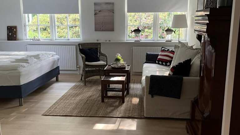 Das Trouville Bed & Breakfast liegt in Hornbæk und ist nur 300 m vom Strand entfernt. Die Umgebung bietet Ihnen die Möglichkeit, entspannende Tage am Meer zu verbringen und die malerische Küste zu erkunden. In der Nähe des Bed & Breakfasts finden Sie auch verschiedene Restaurants, Cafés und Geschäfte. Wenn Sie die Umgebung weiter erkunden möchten, können Sie die nahegelegenen Sehenswürdigkeiten wie Dyrehavsbakken oder die Grundtvig-Kirche besuchen. Der Flughafen Kopenhagen ist ebenfalls gut erreichbar und liegt nur 58 km entfernt.