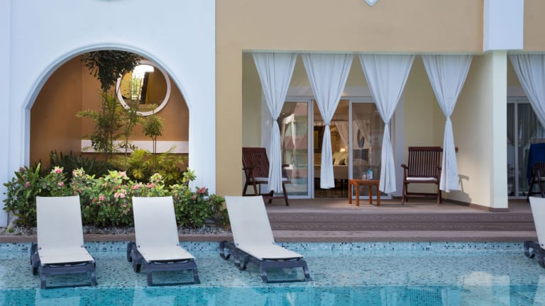 Die grossen Zimmer mit separater Dusche und Whirlpool-Badewanne im kolonialen Stil machen Ihren Aufenthalt besonders. L'Occitane Toilettenartikel, Slippers und Bademantel, Fön, Kosmetikspiegel sind Standard. Ein angenehmer Sitzbereich, Minibar, Kaffeemaschine, Safe , Sat-TV und inkludiertes Wifi runden das Angebot ab. Auf dem Balkon oder der Terrasse lässt sich der tropische Garten bewundern oder man kann genüsslich den Tag ausklingen lassen. Swimup-Juniorsuiten verfügen zusätzlich zu einem direkten Zugang zum Pool im ruhigen Teil der Anlage.