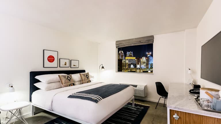 Die 144 Zimmer im Trumbull and Porter - Detroit Downtown sind modern und komfortabel eingerichtet. Jedes Zimmer verfügt über einen 50-Zoll-Flachbild-TV, einen Kühlschrank, einen Schreibtisch und kostenloses WLAN. Ein Safe, ein Bügeleisen und ein Haartrockner sorgen für zusätzlichen Komfort.