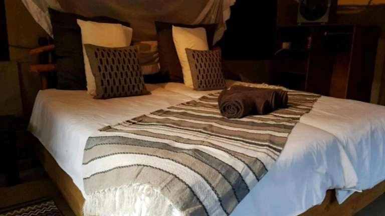Die Lodge bietet Übernachtungsmöglichkeiten in Zelten. Handtücher und Bettwäsche werden zur Verfügung gestellt.