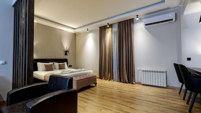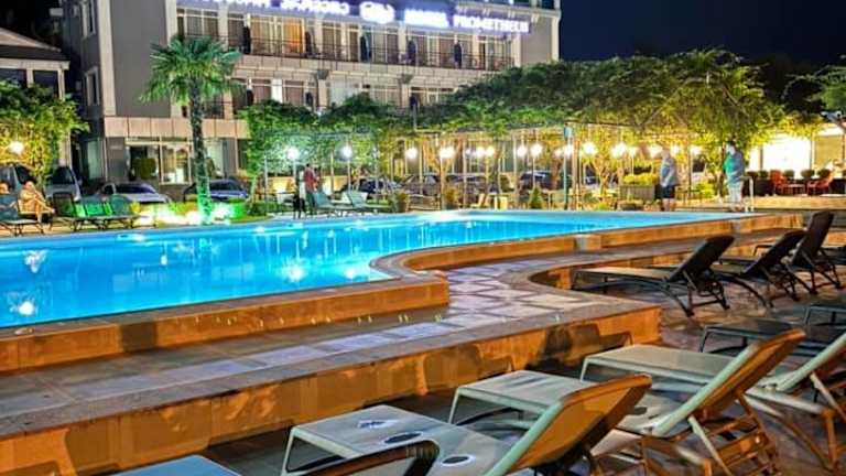 Das Hotel Prometheus befindet sich im Zentrum von Zqaltubo, nur 5 Gehminuten vom zentralen Park und den Mineralquellen entfernt. Der Bahnhof Zqaltubo ist 2,5 km entfernt, und der Flughafen Kutaisi liegt in einer Entfernung von 30 km.