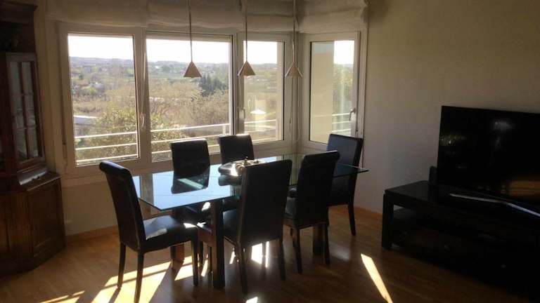 Das klimatisierte Apartment im Tudela Mirador de Bardenas verfügt über 3 Schlafzimmer, die ausreichend Platz für bis zu 6 Personen bieten. Das Apartment ist geschmackvoll eingerichtet und verfügt über einen gemütlichen Wohnbereich mit einem TV, einen Essbereich und eine gut ausgestattete Küche mit Kühlschrank und Geschirrspüler. Handtücher und Bettwäsche werden gestellt, um Ihnen einen angenehmen Aufenthalt zu ermöglichen.