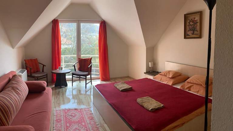 Das Tündérszikla Panzió in Pilisjászfalu ist eine charmante Unterkunft mit wunderschönem Bergblick und einer Vielzahl von Annehmlichkeiten. Hier können Sie sich entspannen und die Natur genießen, während Sie gleichzeitig den Komfort moderner Annehmlichkeiten wie kostenlosem WLAN und kostenfreien Privatparkplätzen nutzen. Die klimatisierten Zimmer sind stilvoll eingerichtet und verfügen über eine Terrasse und einen Flachbild-TV. Einige Zimmer bieten auch einen Balkon und einen separaten Sitzbereich. Der Kinderspielplatz und der japanische Garten in der Nähe bieten zusätzliche Unterhaltungsmöglichkeiten.